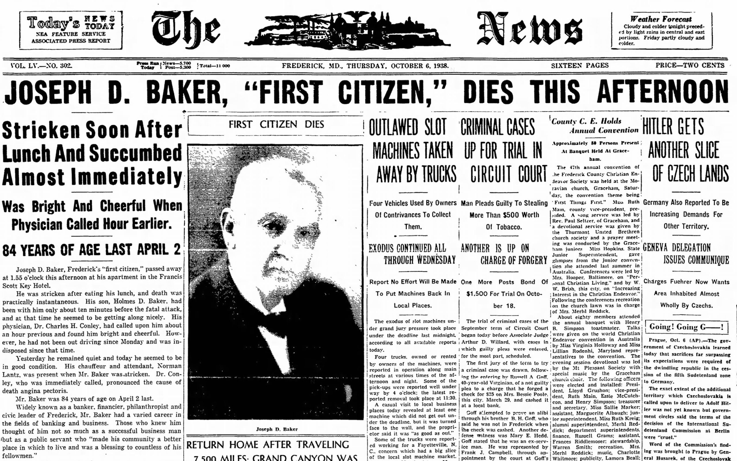 Baker chaired Frederick County’s Selective Service commission (draft board) in 1917.
